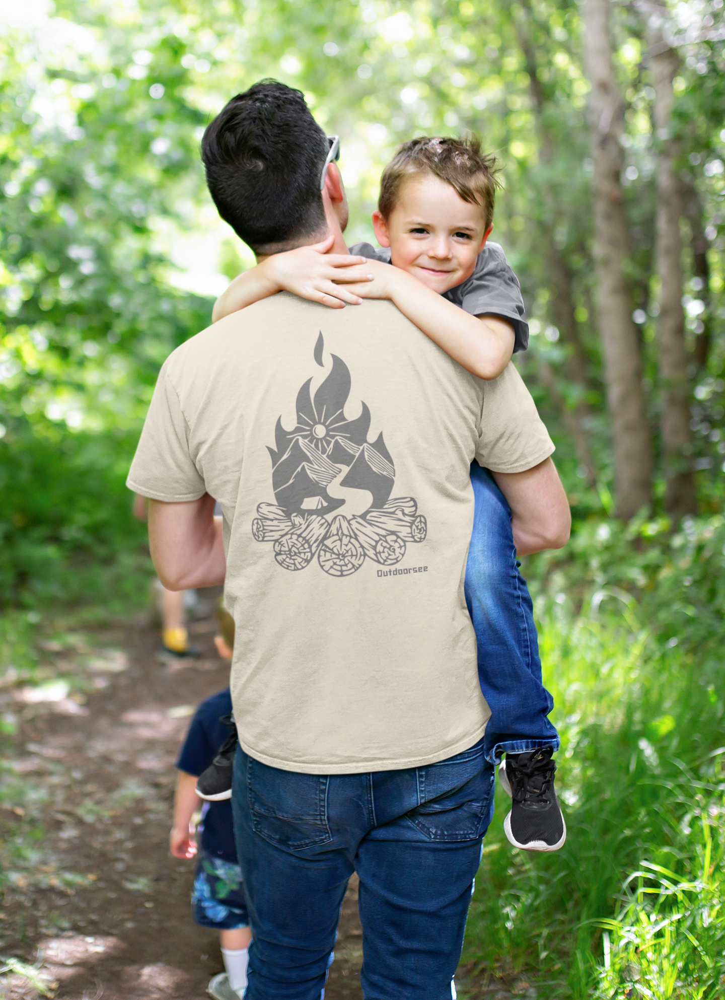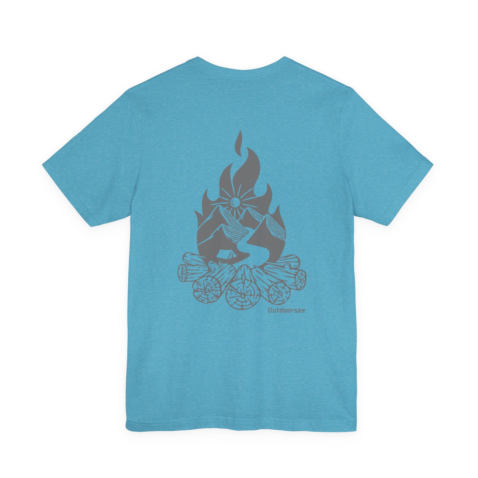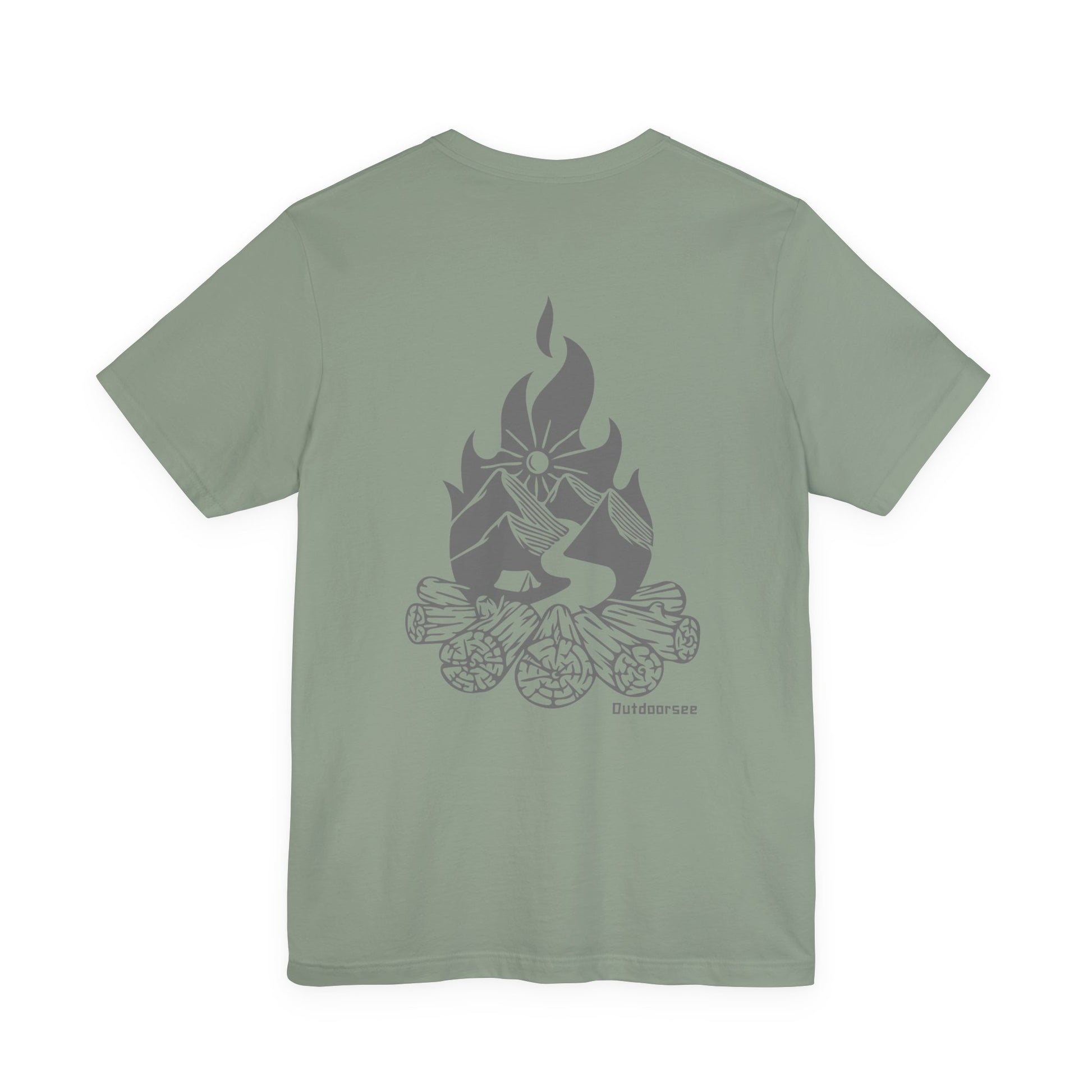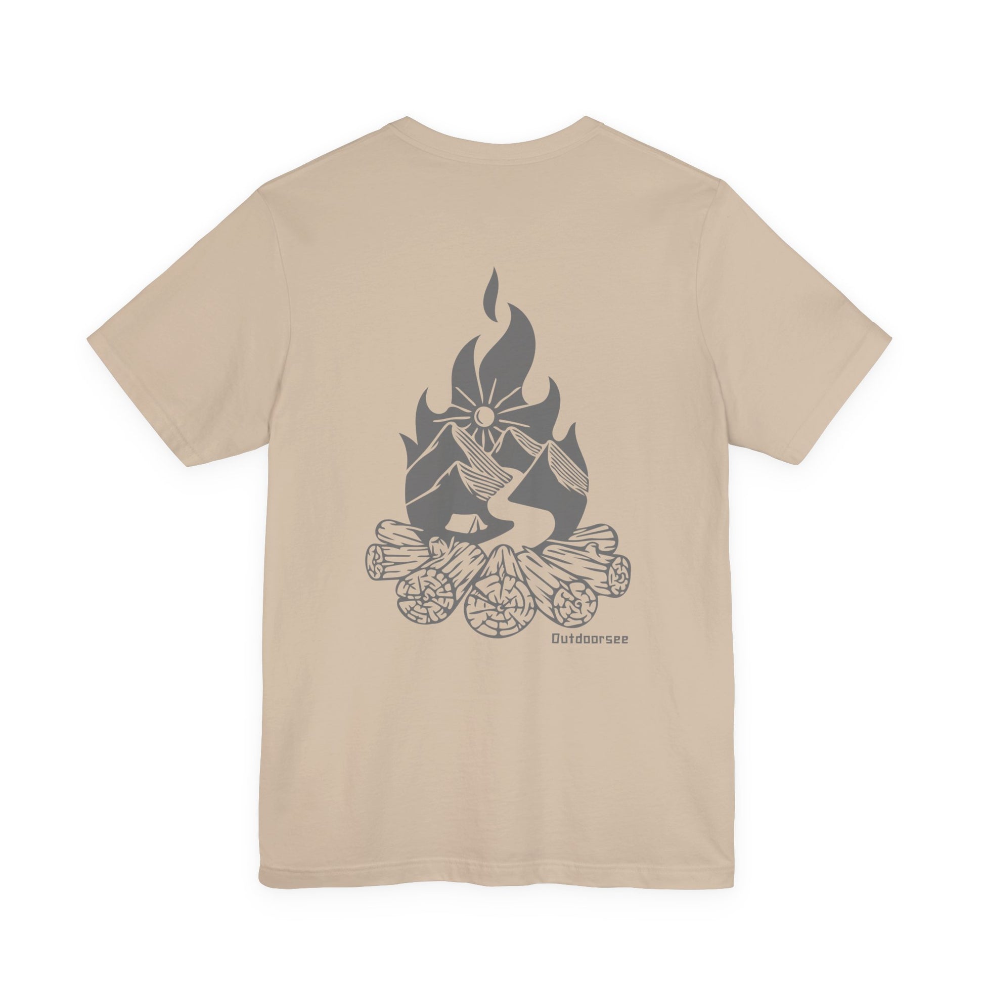 100% combed ring-spun cotton. Vintage-inspired Outdoorsee campfire graphic, screen-printed by hand. Worn best with a pocketknife in one hand and a story in the other.