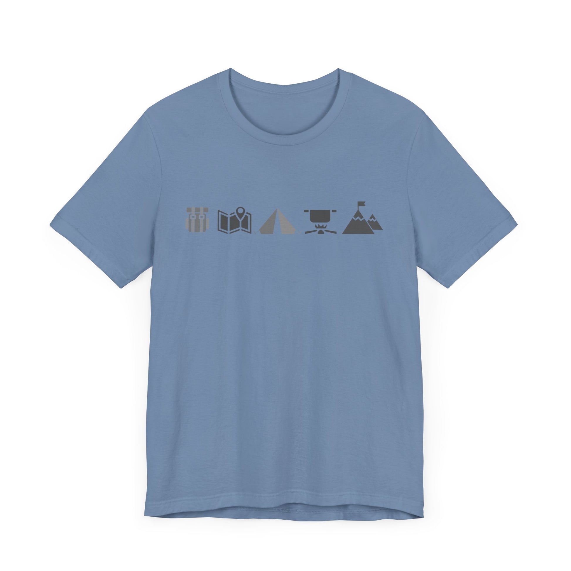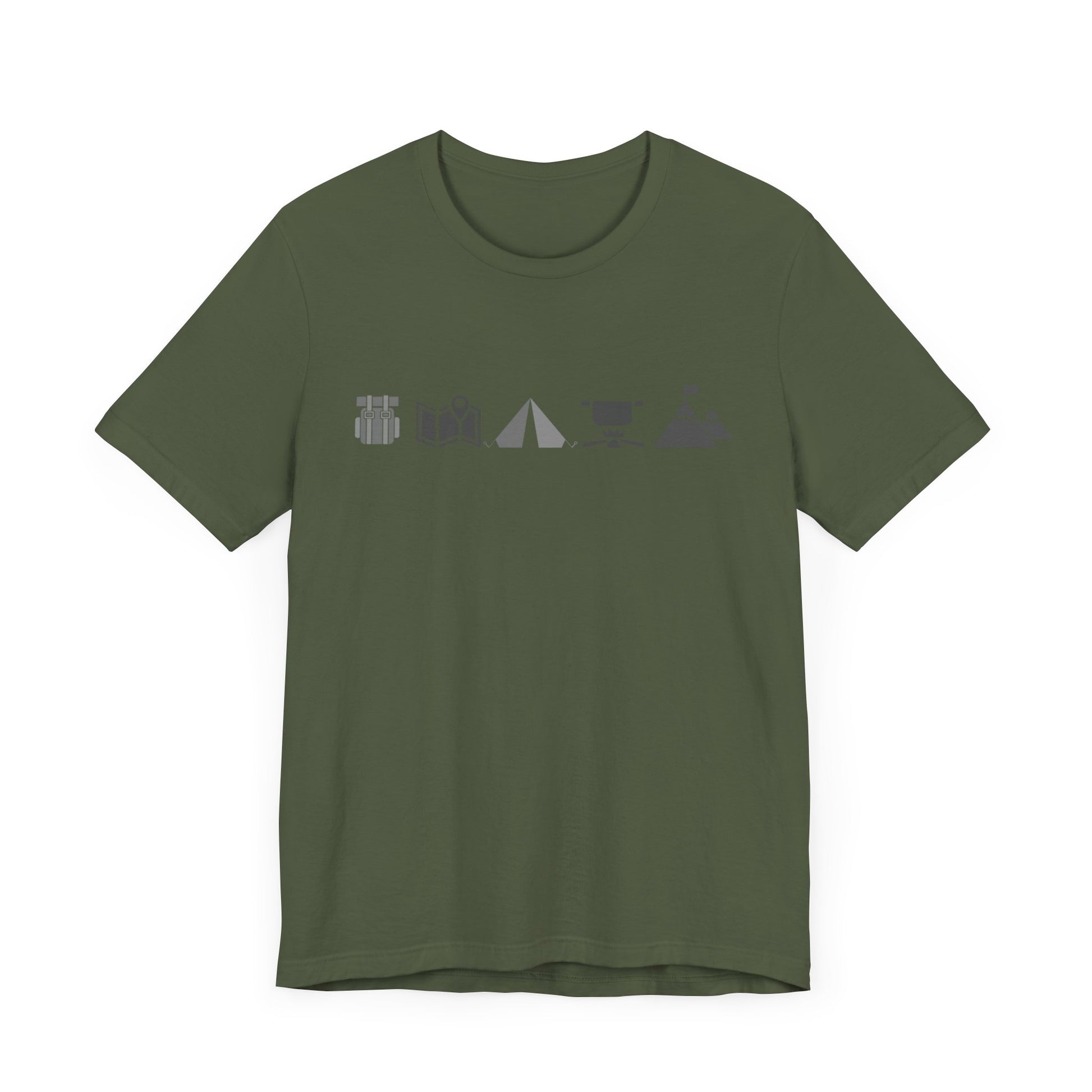 This shirt isn’t just fabric and thread—it’s a statement. A badge of honor for those who prefer their stories told by campfire light, their victories marked by a summit flag, and their direction dictated by the call of the wild. Five symbols. Five reminders that adventure is always just a step away.